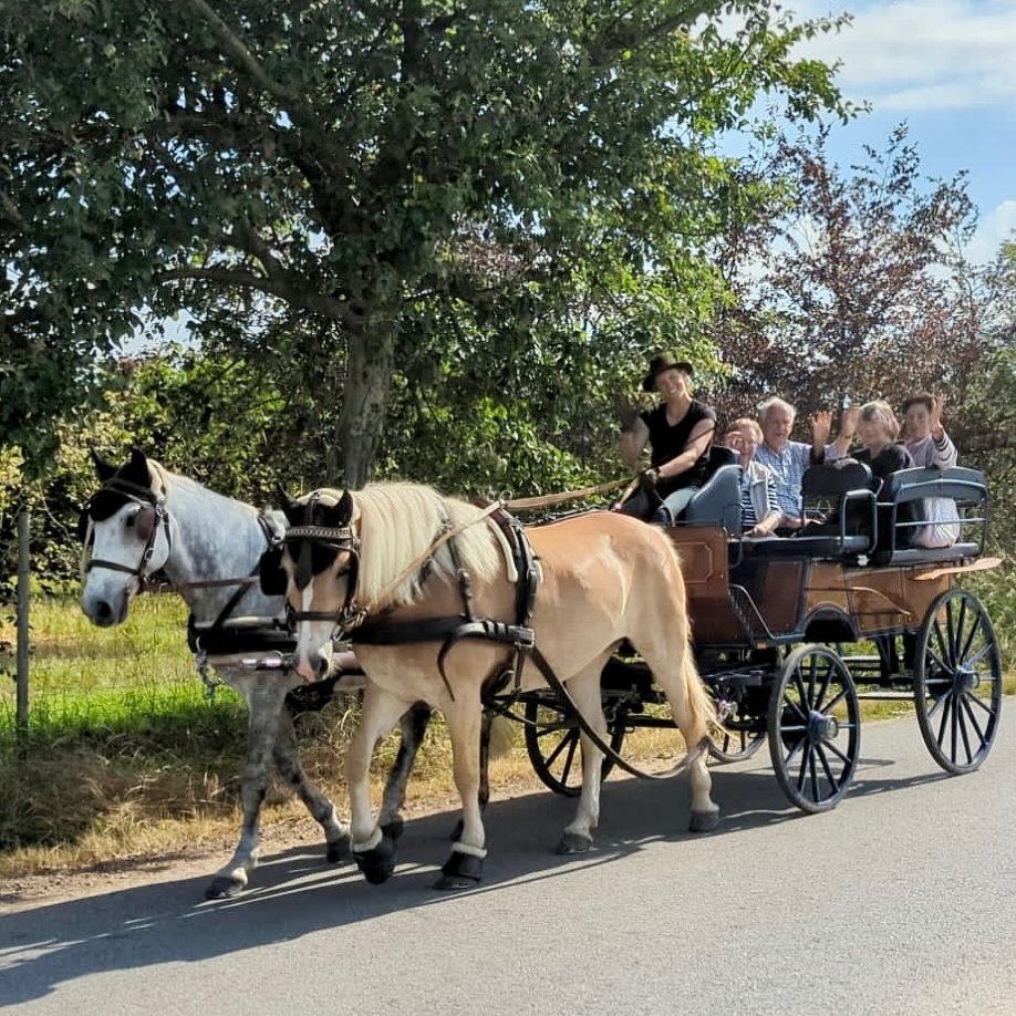 Gönnen Sie Ihrer Familie eine entspannte Kutschfahrt durch die wunderschöne Natur – perfekt für alle Altersklassen, inklusive Großeltern.